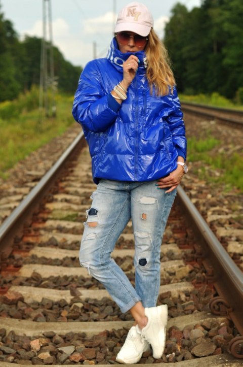 KURTKA PUCHOWA revanstudio PUCH lakier NIEBIESKA ? Ubrania damskie prosto z W?och.