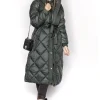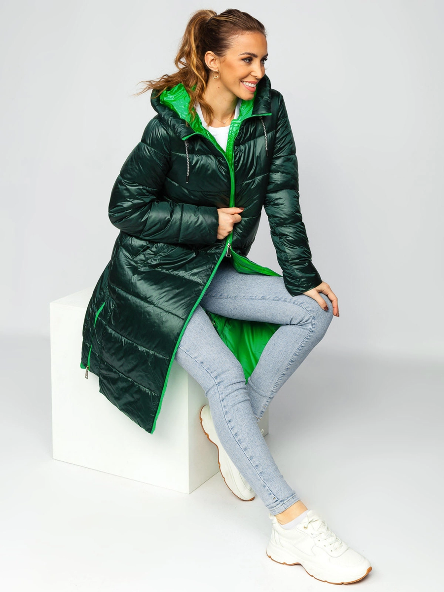 Zielona d?uga pikowana kurtka damska zimowa z kapturem Denley J9063